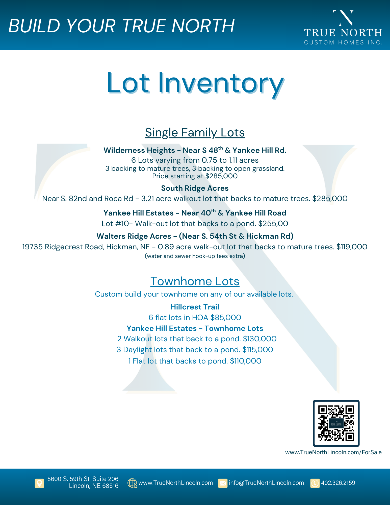 We have a wide variety of lots available in the Lincoln, NE and surrounding area.